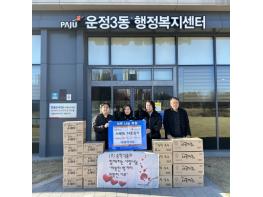 파주시 운정3동은 지난 1일 야당동 소재 식품 전문기업 ㈜송학식품으로부터 취약계층을 위해 물품을 기탁 받았다고 밝혔다.