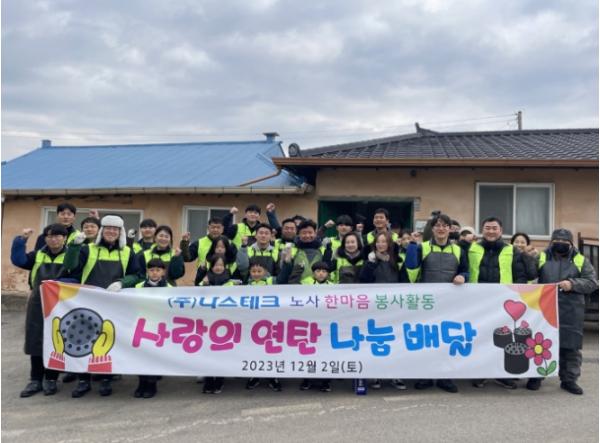 ㈜나스테크는 지난 2일 사랑의 연탄 1,500장을 신창면 행복키움추진단과 함께 기초수급자 및 저소득 가구 3가정에 직접 전달했다.