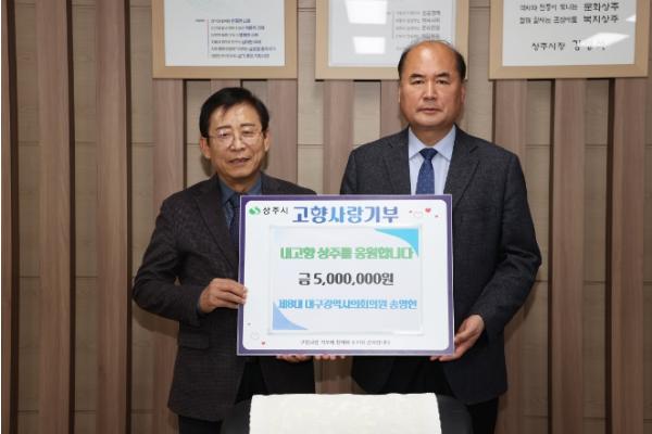 제8대 대구광역시의회의원이자 현재 재구상주향우회 자문위원인 송영헌 씨는 12월 4일 상주시청 시민의방을 방문해 고향사랑기부금 500만 원을 전달했다.