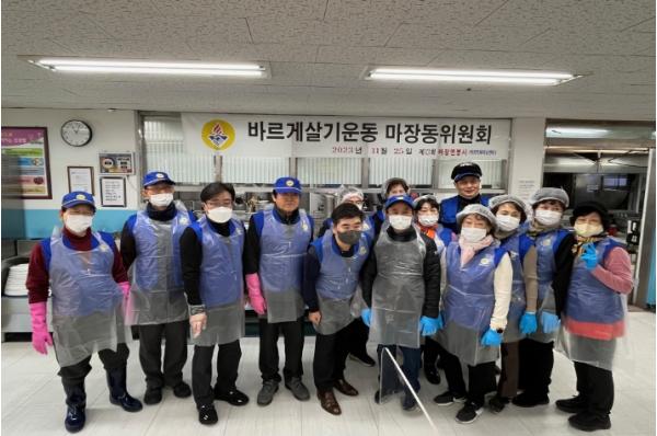 마장동 바르게살기운동위원회는 2011년부터 매년 연말 비전트레이닝센터를 찾아 올해 13회째 짜장면 나눔행사를 실시하고 있다. 이 밖에도 김장나누기 봉사와 저소득층 명절음식 나눔, 독거어르신 생필품 꾸러미 나눔 등 지역사회를 위한 공헌 활동을 꾸준하게 이어가고 있다.