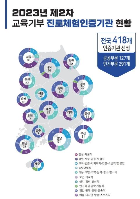 교육부는 신규로 선정된 418개 기관을 포함하여 총 2,736개의 진로체험 인증기관을 운영하고 있다. 진로체험을 희망하는 학교는 진로체험 누리집 ‘꿈길’에서 인증기관을 확인하고 프로그램을 신청할 수 있다.