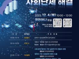교육부는 12월 4일, 코리아나 호텔에서 ‘2024년 사회정책 방향 모색 : 교육의 힘으로 사회난제 해결’을 주제로 사회정책 분야의 6개 주요 학회와 함께 공개토론회를 개최한다.
