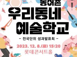교육부는 12월 8일 롯데콘서트홀(서울 잠실)에서 개최되는 2023 ‘우리동네 예술학교’ 전국단위 성과발표회에서 농어촌 참 좋은 학교 공모전에 최종 선정된 14개 학교와 교원에 대한 시상(교육부장관상)을 진행한다.