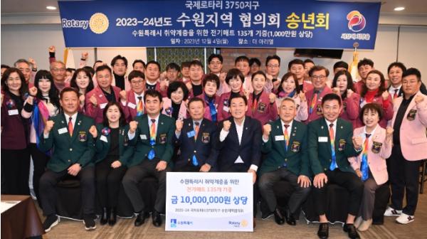 국제로타리 3750지구 수원지역협의회가 “취약계층에 전달해 달라”며 수원시에 전기매트 135개(1000만 원 상당)를 기부했다.
