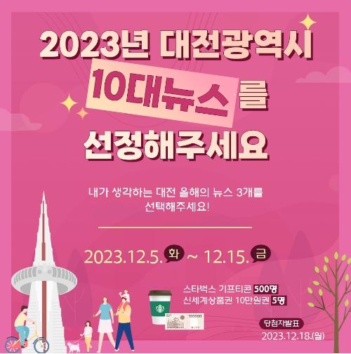 대전시가 올 한 해 선보인 다양한 공감 정책 중 시민에게 가장 사랑받은 ‘2023년 대전시정 10대 뉴스’를 선정하기 위해 5일부터 오는 15일까지 온라인 투표를 진행한다.