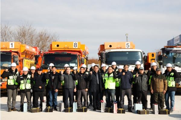 인천시설공단(이사장 김종필) 영종도시기반사업단은 겨울철 폭설을 대비하여 지난 4일 도로제설 모의훈련을 실시하고 현장작업자를 위한 안전BOX를 전달했다.