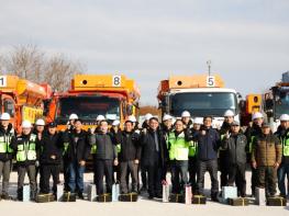 이날 모의훈련에는 덤프트럭과 굴착기 운전자들을 포함한 현장작업자 30명이 참여한 가운데 ▲제설차량 확대(8→9구간)에 따른 구간별 제설노선 모의주행 ▲제설장비 생산업체와 협업한 장비 작동 교육 ▲제설제 상차 훈련 등을 실시하여 보다 신속하고 효율적인 제설작업를 준비했다.