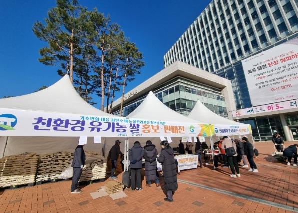 전북 고창군이 지난 1일 서울시 마포구청을 찾아 저탄소 인증 친환경 유기농 쌀과 ㈜황토배기유통 절임배추 양념세트 홍보·판매전을 개최했다고 밝혔다.