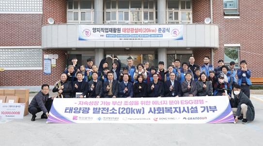 부산시는 한국에너지공단, 한화큐셀, 동양이엔피, 그랜드썬기술단과 지난 5일 오후 2시 연제구 양지직업재활원에서 '지속성장 가능 도시 조성을 위한 에너지 분야 사회가치경영(ESG)' 2차년도 사업 준공식을 개최했다고 밝혔다.