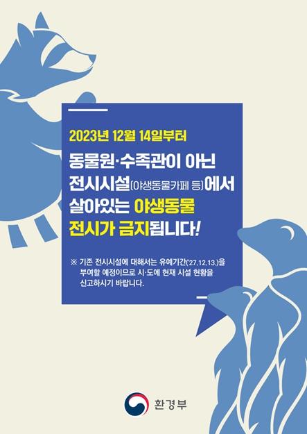 단, 기존 야생동물 전시자가 2023년 12월 13일까지 업체명, 소재지, 보유동물 종과 개체 수를 신고하면 4년간(2027년 12월 13일까지) 야생동물을 한시적으로 전시할 수 있다.