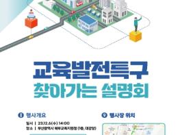 부산시는 6일 오후 2시 부산북부교육지원청 대강당에서 교육부 주관 '교육발전특구 찾아가는 설명회'가 열린다고 밝혔다.