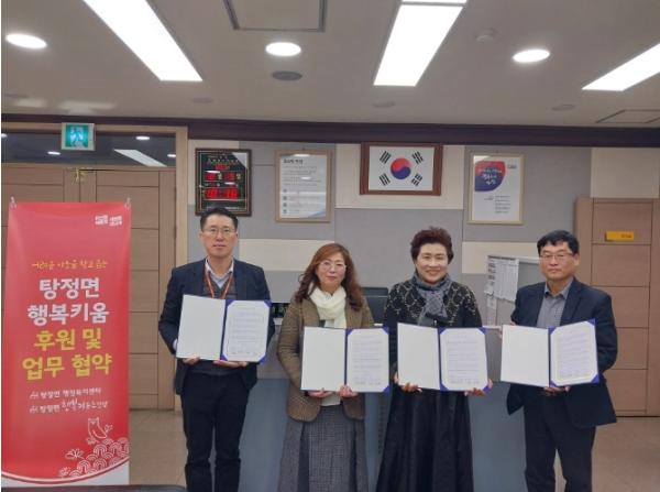 지난 5일, 탕정면 행복키움추진단이 함께해요 노인전문요양원병설 주야간보호센터와 지역주민을 위한 행복키움지원사업에 후원 협약을 체결했다.