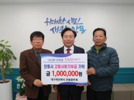 한편, 안동 출신으로 대구에서 개인택시 사업을 하는 대구개인택시 안동향우회(회장 류태하)에서 5일 안동시를 방문해 안동시에 고향사랑 기부금 100만 원을 기탁하며 애향심을 전달했다.