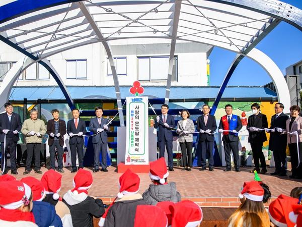 남해군은 5일 남해읍 행정복지센터 야외무대에서 장충남 군수, 임태식 남해군의회 의장을 비롯한 성금 기탁자, 자원봉사자, 군민들이 참석한 가운데 ‘희망2024 나눔캠페인’ 사랑의 온도탑 제막식 및 현장모금회를 개최했다.