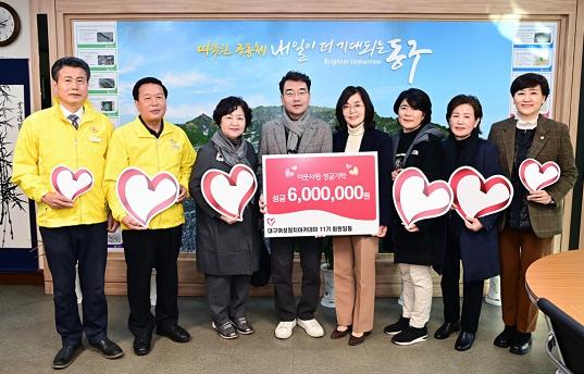 대구여성정치아카데미 11기 동기회는 지난 5일, 관내 장애인협회 및 저소득 가구를 위한 이웃사랑 후원금 600만원을 대구 동구민간사회안전망(회장 조동래)에 기탁했다.