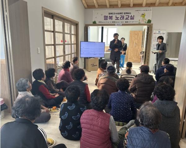 부여군장애인종합복지관에서는 지난 30일 찾아가는 이동복지관 사업으로 충화면에 천당 1리 마을회관에서 장애인과 비장애인이 함께하는 행복노래교실 통합프로그램을 진행했다.