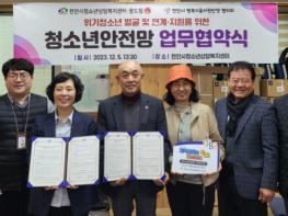 천안시청소년상담복지센터(센터장 이미원)는 지난 5일 천안시 행복키움지원단장 협의회(회장 장윤곤)와 촘촘한 청소년안전망 구축을 위한 업무협약을 체결했다.