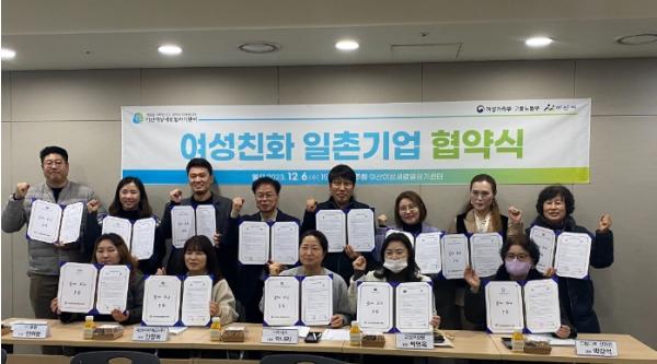 아산시 여성새로일하기센터는 지난 6일 여성 친화적 기업문화 조성 및 일과 생활 균형을 통한 안정적 고용 유지를 위해 14개 업체와 ‘여성 친화 일촌 기업’ 협약을 체결했다.