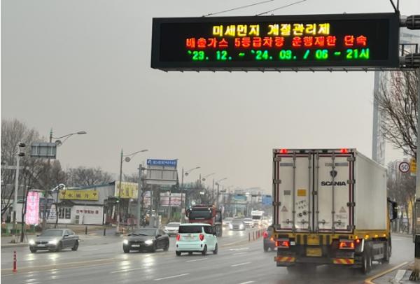 이에 따라 내년 3월까지 주말과 공휴일을 제외한 평일 오전 6시부터 오후 9시까지 배출가스 5등급 차량 운행을 제한하고, 위반 시 과태료 10만원을 부과한다.