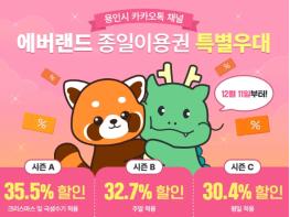 용인특례시는 시의 공식 카카오톡 채널 구독자에게 에버랜드 이용권을 최대 35.5% 할인하는 이벤트를 오는 11일부터 내년 1월 말까지 진행한다고 7일 밝혔다.