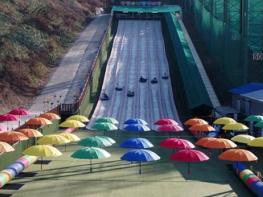 겨울에만 한시적으로 운영되는 단점을 보완해 사시사철 즐길 수 있는 썰매는 잔디 구간(L=14m)에 안전히 착륙하게 된다.