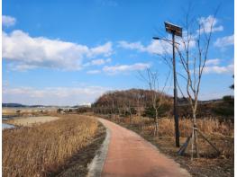 한천체육공원은 많은 주민들이 평소에 운동과 산책을 즐기는 곳으로 태양광 LED 가로등이 설치됨에 따라 야간보행에 안심하고 쾌적한 환경을 제공하고 태양광 충전으로 가로등을 밝혀 공공전기료도 절감할 수 있다.