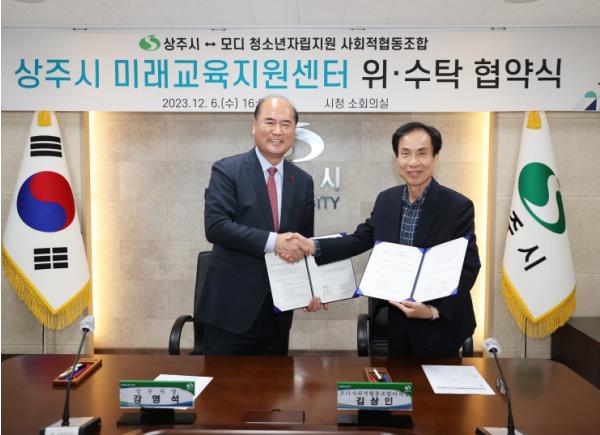 상주시는 12월 6일 모디 청소년자립지원 사회적협동조합과 상주시 미래교육지원센터 운영사무 위·수탁 협약을 체결했다.