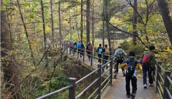 '다 같이 걷자 동네 한바퀴~'치악산 둘레길 프로그램은 지난 10월 26일부터 5주간 매주 화, 목 오전 9시부터 진행했으며, 둘레길 완보를 위한 이동 수단 제공을 통해 11개 코스를 참가자 70% 이상 완보하는 성과를 나타냈다.