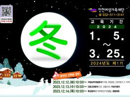 ○인천여성가족재단(대표이사 김미애)은 12월 12일부터 2024년도 1기 평생교육프로그램 수강생을 모집한다. [교육기간: 2024. 1. 5.(금) ~ 3. 25.(월)]
