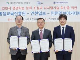 이날에는 류권홍 인천인재평생교육진흥원장, 박현수 인천일보 대표이사, 조성호 인천일보아카데미 대표이사 등 관계자들이 모여 ▲각 기관에서 추진하는 교육사업 홍보 협력 및 지원 ▲평생교육과 디지털기술 확산 위한 인적?물적 인프라 공유 등의 협력 방안을 약속했다.