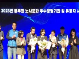 한편, 개인 분야에서는 건전한 노사문화 구축 및 직원 권익 보호에 이바지한 공로로 김은경 공무원복지팀장이 국무총리 표창을, 윤종문 노동조합 부위원장 등 공무원 3명이 장관 표창을 받았다.