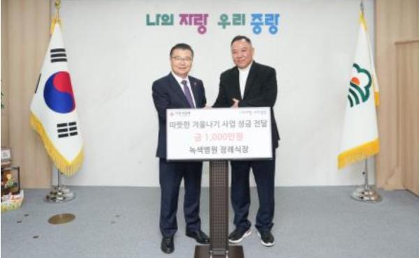 중랑구가 7일 오후, 녹색병원 장례식장으로부터 ‘희망온돌 따뜻한 겨울나기’ 성금 1,000만 원을 전달받았다.