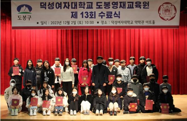 도봉구가 지원하는 '덕성-도봉 영재교육원'이 지난 2일 덕성여자대학교 약학관 아트홀에서 제13기 수료식을 개최했다고 밝혔다.