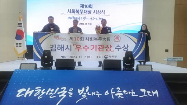 김해시가 12월 7일 정부세종컨벤션센터에서 병무청이 주최하는 제10회 사회복무大賞에서 우수기관상을 수상했다.