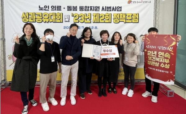 구체적으로 ▲전국 최초 노인케어안심주택 개소 ▲전국 최초 재택의료센터 개소▲방문주치의 사업 ▲동행이동서비스 ▲맞춤영양서비스 ▲방문가사서비스 등 주거와 의료, 요양과 돌봄에 이르기까지 30여 종에 달하는 어르신 노후 맞춤 통합돌봄 서비스 제공으로 독창적인 돌봄모델 구축 성과를 인정받아 지난해에 이어 2년 연속 수상의 영예를 안았다.