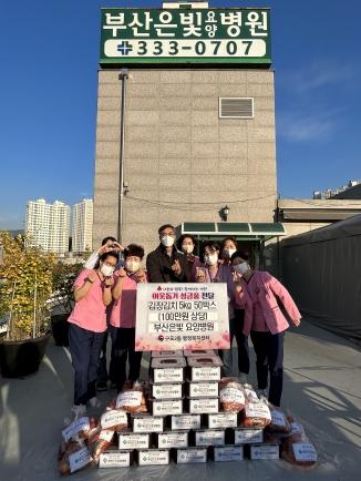 부산은빛요양병원은 작년 12월에 성금 150만원을 기탁한 데에 이어 올해도 김장김치를 기탁하며 구포2동 이웃들을 위하여 꾸준히 나눔을 실천하고 있다.