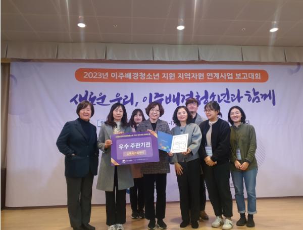 재단에서는 2023년 추진한 이주배경청소년 지원 지역자원 연계사업 결과보고서와 증빙자료 등을 바탕으로 사업에 참여하고 있는 5개 지자체(김해시, 화성시, 시흥시, 김포시, 전주시)에 대해 심사를 진행하였고, 김해시가족센터가 우수 주관기관, 목양비젼지역아동센터가 우수 참여기관으로 선정되는 영광을 얻었다.
