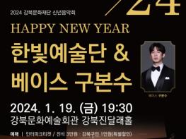 강북문화재단은 오는 19일 오후 7시 30분 강북문화예술회관 강북진달래홀에서 2024년 신년음악회 '한빛예술단 & 베이스 구본수'를 개최한다.
