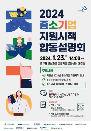 [singers news 씽어즈뉴스, 와보소기자] 광주시 북구가 오는 23일 오후 2시 광주테크노파크 생활지원로봇센터 대강당에서 12개 협력 기관과 함께 ‘2024년 중소기업 지원시책 합동 설명회’를 개최한다고 밝혔다.