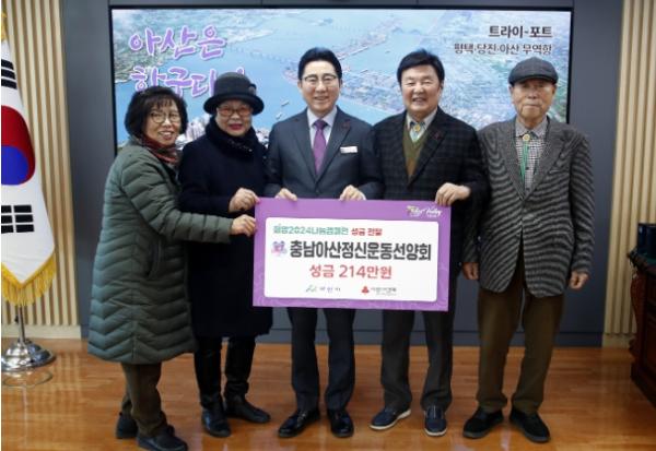 [singers news 씽어즈뉴스, 와보소기자] 충남아산정신운동선양회가 지난 15일 시청을 방문하여 취약계층을 위해 써 달라며 성금 214만 원을 전달했다.