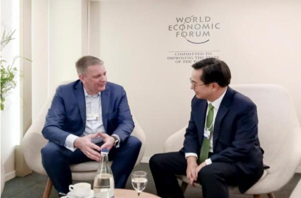 김동연 지사는 현지 시각 16일 오전 다보스 콩그레스 센터(Davos Congress Center)에서 세계적 과학기술기업 독일 머크 그룹의 카이 베크만(Kai Beckmann) 일렉트로닉스 회장(CEO)을 만나 전자재료 부문의 경기도 투자를 요청했다.