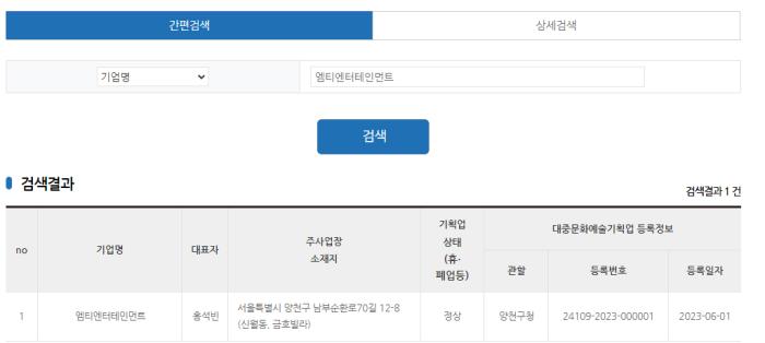 엠티엔터테인먼트는 정식으로 등록된 합법적인 대중문화예술기획사입니다