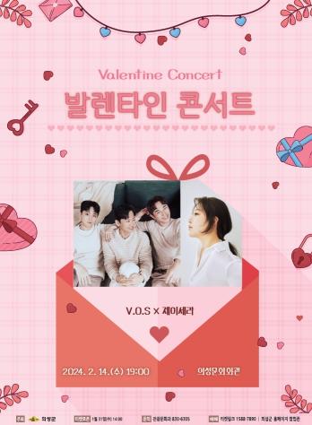 [singers news 씽어즈뉴스, 와보소기자] 의성군은 발렌타인데이를 맞아 초콜릿만큼이나 달콤하고 로맨틱한 시간을 선사해 드릴 'V.O.S & 제이세라 발렌타인 콘서트'를 오는 2월 14일 수요일 저녁 7시 의성문화회관에서 개최한다고 밝혔다.