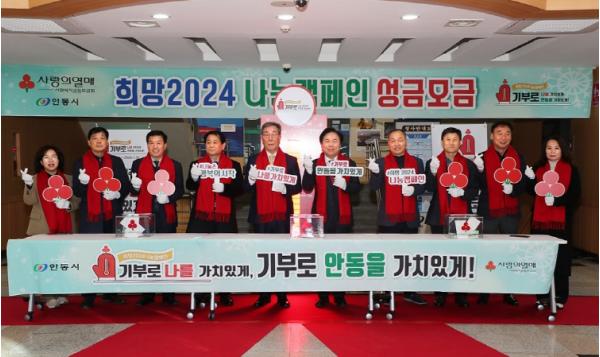[singers news 씽어즈뉴스, 와보소기자] 안동시는 ‘기부로 나를 가치있게, 기부로 안동을 가치있게’라는 슬로건으로 2023년 12월 1일부터 2024년 1월 31일까지 총 62일간 실시한 '희망2024 나눔캠페인'에서 약 7억 8천만 원을 모금하여 사랑의 온도 100℃를 수월하게 돌파했다.