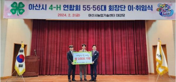 이날 아산시4-H연합회에서는 어려운 이웃을 위해 사용해 달라며 쌀 1,000kg(400만 원 상당)을 아산시에 기부하여, 지역사회의 상생과 나눔을 직접 실천하는 더욱 뜻깊은 시간을 가졌다.