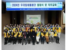 이날 행사는 1부 발대식, 2부 직무교육 순으로 진행됐다. 발대식에서는 선서문을 낭독하고 2023년 동별 활동 영상을 시청하며 앞으로의 돌봄 활동에 대한 결의를 다졌고, 이어진 2부 직무교육에서는 우리동네돌봄단 사업의 방향과 내용, 상황별 가이드 및 안전 수칙, 활동일지 작성 방법 등을 교육해 전반적인 역량을 강화했다.