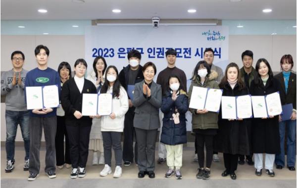 은평구는 지난달 31일 은평구청 기획상황실에서 ‘2023. 은평구 인권공모전 시상식’을 개최하고 인권친화적 문화 확산에 이바지한 공로로 상장을 전달했다.