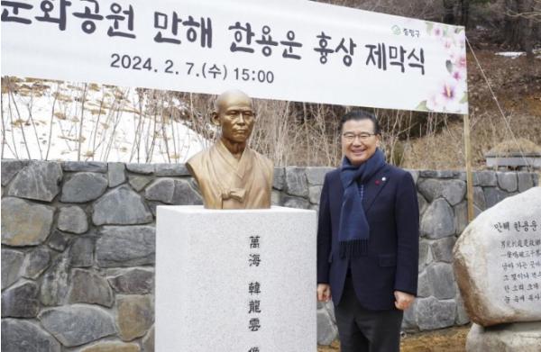 [singers news 씽어즈뉴스, 와보소기자] 중랑구가 지난 7일 망우역사문화공원 한용운 묘역에 흉상을 설치하고 제막식을 개최했다.