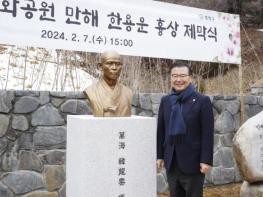 흉상 제막식에는 류경기 구청장을 비롯해 한용운 선생의 외손이신 정재홍님, 사암연합회 법장사 퇴휴스님, 만해기념관 전보삼 관장 등이 참석했다.