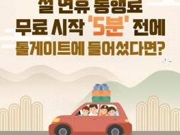 고속도로 통행료 면제로 더 즐거운 귀성길 되시길 바랍니다.